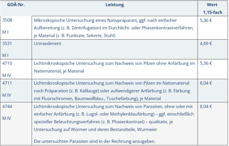 Mikroskopische Untersuchungen in der hausärztlichen Privatabrechnung